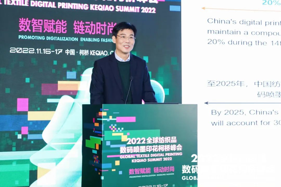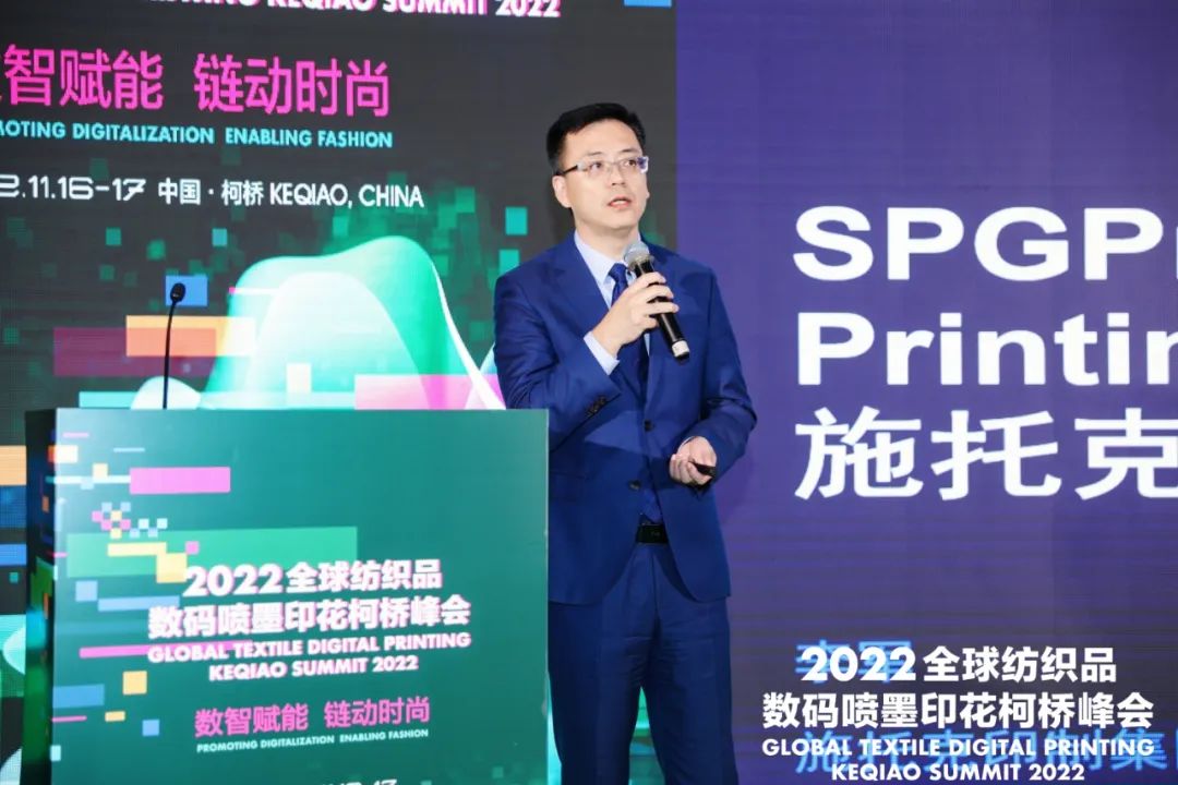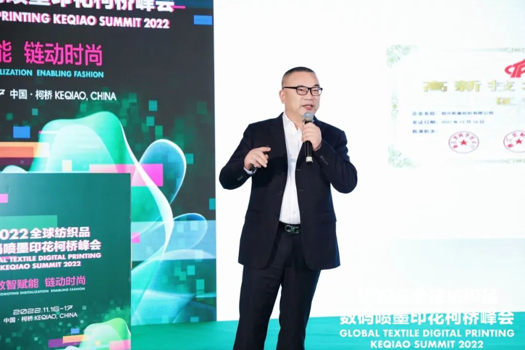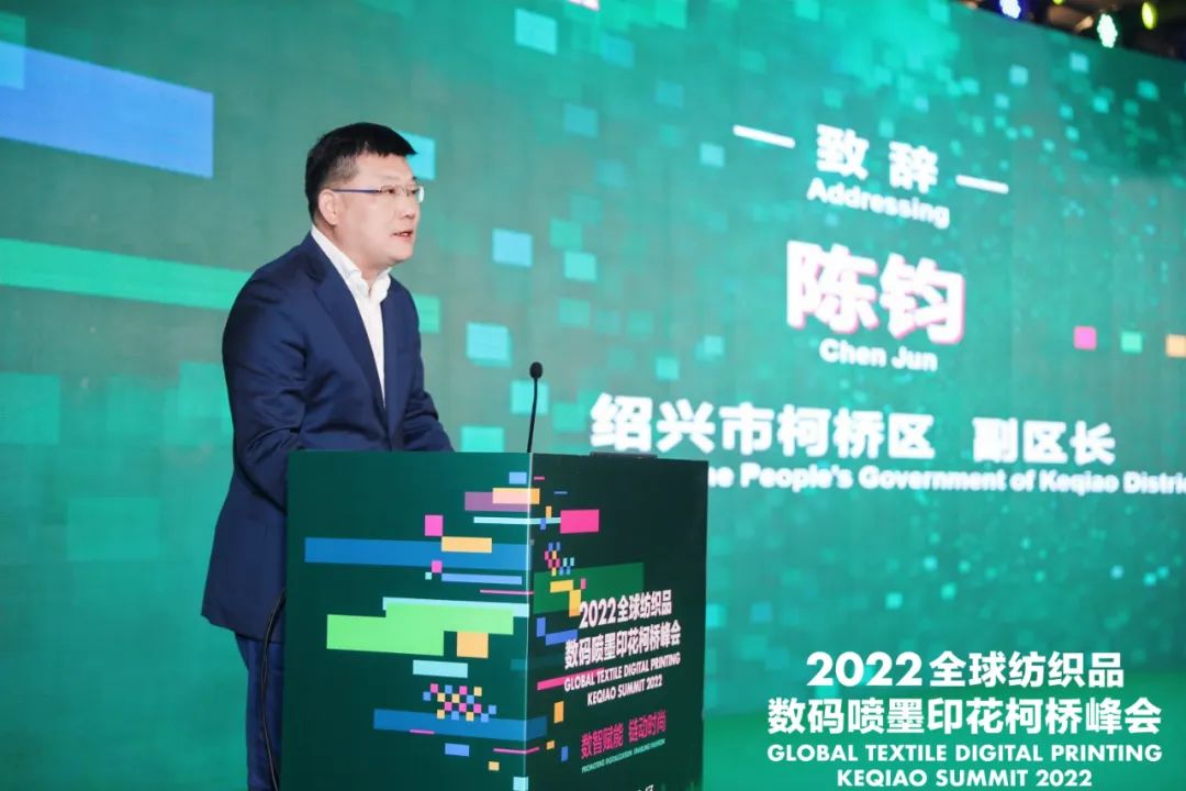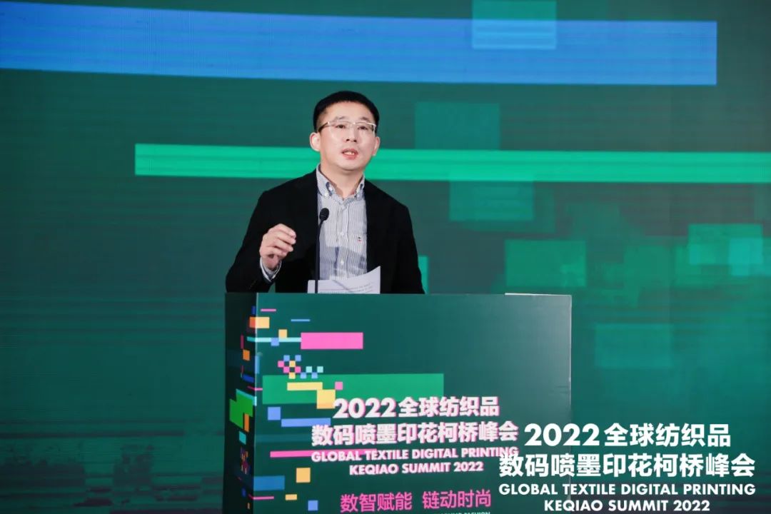 紹興市柯橋區(qū)副區(qū)長陳鈞致辭時(shí)表示,近年來,柯橋區(qū)緊緊圍繞高質(zhì)量發(fā)展要求,以打造世界級(jí)紡織產(chǎn)業(yè)集群為目標(biāo),大力推動(dòng)生產(chǎn)方式變革與時(shí)尚創(chuàng)意發(fā)展,逐步發(fā)展成為中國千億級(jí)首批國家新型工業(yè)化紡織印染產(chǎn)業(yè)示范基地和中國綠色印染研發(fā)生產(chǎn)基地。數(shù)碼噴墨印花是印染行業(yè)的一個(gè)細(xì)分領(lǐng)域,集綠色制造、柔性制造和智能制造于一體,是印染行業(yè)向創(chuàng)新發(fā)展、綠色發(fā)展、智能發(fā)展模式轉(zhuǎn)型的代表性技術(shù),具備廣闊的發(fā)展前景。