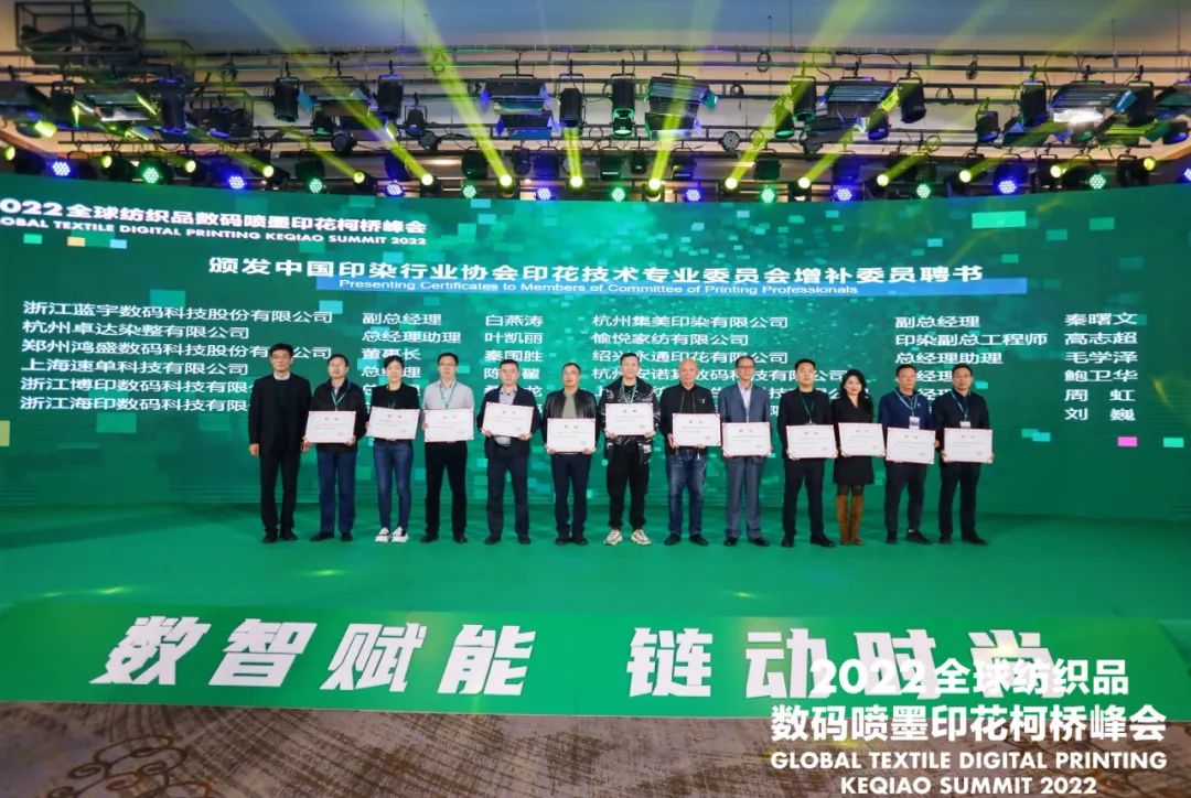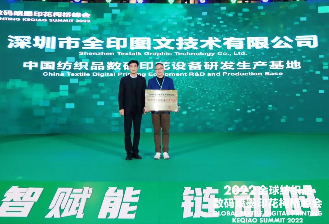 會(huì)上,組委會(huì)授予中國輕紡城建設(shè)管理委員會(huì)“2022全球紡織品數(shù)碼噴墨印花峰會(huì)突出貢獻(xiàn)獎(jiǎng)”。為深圳市全印圖文技術(shù)有限公司頒發(fā)了“中國紡織品數(shù)碼印花設(shè)備研發(fā)生產(chǎn)基地”銅牌。同時(shí)還為第四屆中國印染行業(yè)協(xié)會(huì)印花技術(shù)專業(yè)委員會(huì)增補(bǔ)委員頒發(fā)了聘書。