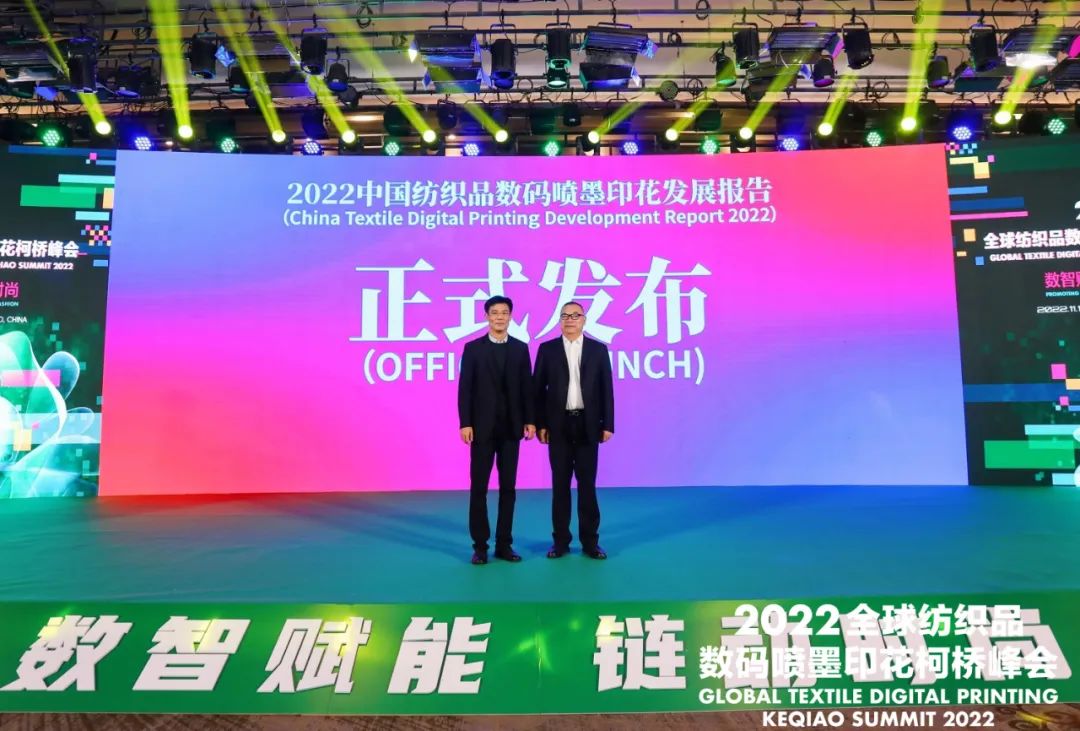 11月17日,由中國印染行業(yè)協(xié)會(huì)、紹興市柯橋區(qū)人民政府共同主辦,紹興市柯橋區(qū)中國輕紡城建設(shè)管理委員會(huì)承辦的2022全球紡織品數(shù)碼噴墨印花柯橋峰會(huì)在柯橋召開。會(huì)上,《2022中國紡織品數(shù)碼噴墨印花發(fā)展報(bào)告》正式發(fā)布。