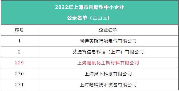 日前,上海市經(jīng)濟(jì)和信息化委員會(huì)根據(jù)《上海市優(yōu)質(zhì)中小企業(yè)梯度培育管理實(shí)施細(xì)則》(滬經(jīng)信規(guī)范〔2022〕8號(hào)),對(duì)中小企業(yè)開(kāi)展了2022年創(chuàng)新型中小企業(yè)評(píng)價(jià)工作,上海幗帆化工新材料有限公司被評(píng)為上海市創(chuàng)新型中小企業(yè)。