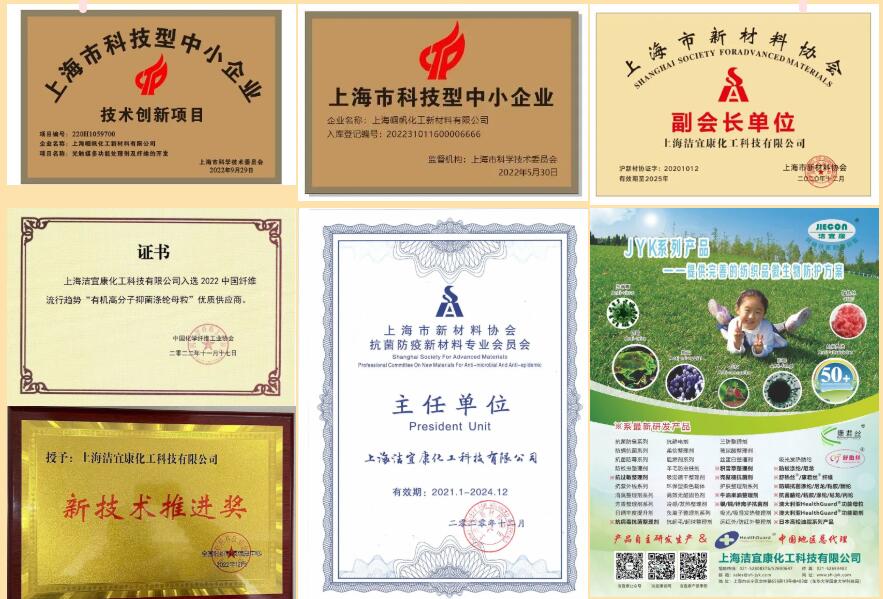 上海幗帆化工新材料有限公司一直專注于紡織品功能性纖維/紗線以及功能性添加劑和母粒等產(chǎn)品的自主研發(fā)與創(chuàng)新,技術(shù)創(chuàng)新能力與科研成果頻頻收獲政府、行業(yè)與客戶的認(rèn)可。目前已榮獲“上海市科技型中小企業(yè)”、“上海市創(chuàng)新型中小企業(yè)”等諸多榮譽(yù),并獲得上海市科技型中小企業(yè)技術(shù)創(chuàng)新項(xiàng)目的資助。目前公司在產(chǎn)品開(kāi)發(fā)的同時(shí),進(jìn)行相關(guān)知識(shí)產(chǎn)權(quán)的申報(bào),目前已經(jīng)申報(bào)國(guó)家發(fā)明專利和實(shí)用新型專利三十余項(xiàng)(偕同集團(tuán)公司內(nèi)的上海潔宜康化工科技有限公司和上海翌璠工貿(mào)發(fā)展有限責(zé)任公司)。