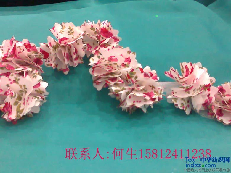 雪紡花朵,色丁花朵,胸花,頭花花邊的用途和特點(diǎn):利和興服裝輔料工藝廠生產(chǎn)的立體花朵花邊。別名:雪紡花朵、色丁花朵、胸花、頭花、鞋花、片花花朵、片花花邊、花朵花邊、服裝花朵、燒花花朵,燒片花朵花邊,激光燒花花朵.是利用各種工藝生產(chǎn)而成,有激光燒花工藝燒成的片花.再用人工或機(jī)器做成立體花朵花邊,也有有超聲波工藝所生產(chǎn)的布帶,布條,然后再經(jīng)人工或機(jī)器,生產(chǎn)成美觀的立體花朵花邊。有單朵的,也有連在一起成條的,花型款式多種多樣,適合多方面的使用。