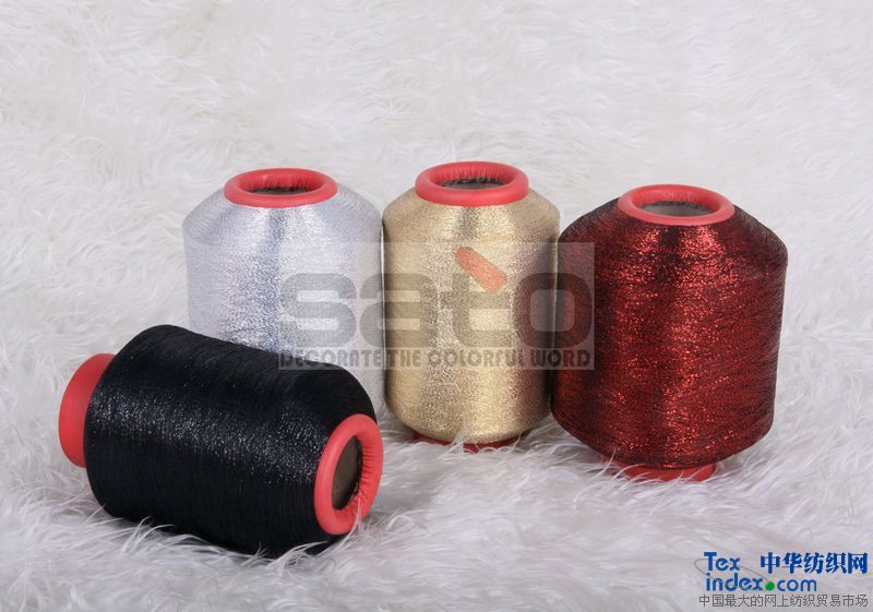 MH型 產(chǎn)品是由分切好的鍍鋁金銀絲片與滌綸、錦綸、人造絲或者其他紗線合捻而成。