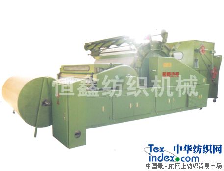本機(jī)的前道工序是軋花機(jī),本機(jī)用于加工棉纖維和化學(xué)纖維。將前道工序送來的棉、化纖等進(jìn)行開松分梳除雜。使所有呈卷曲、塊狀的棉團(tuán)成為基本伸直的單纖維狀態(tài),并在此過程中,除掉清花工序遺留下來的破籽、雜質(zhì)的短絨,然后加工成被套。