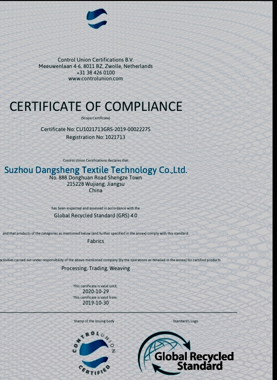 GRS再生環(huán)保全滌桃皮絨