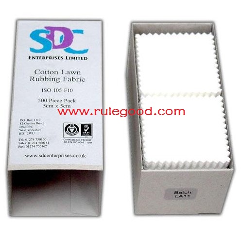 SDC ISO標(biāo)準(zhǔn)摩擦布用于ISO 105 X12, M&S C8 干濕摩擦顏色堅(jiān)牢度和耐雨水顏色堅(jiān)牢度測(cè)試等等。 產(chǎn)品尺寸和包裝: ☆ 5厘米x 5厘米。每盒500片。