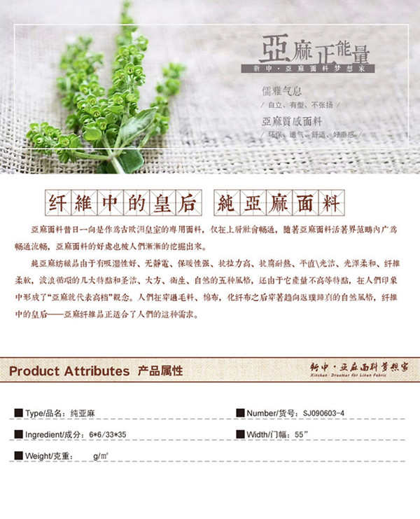 所屬分類 面料,麻面料