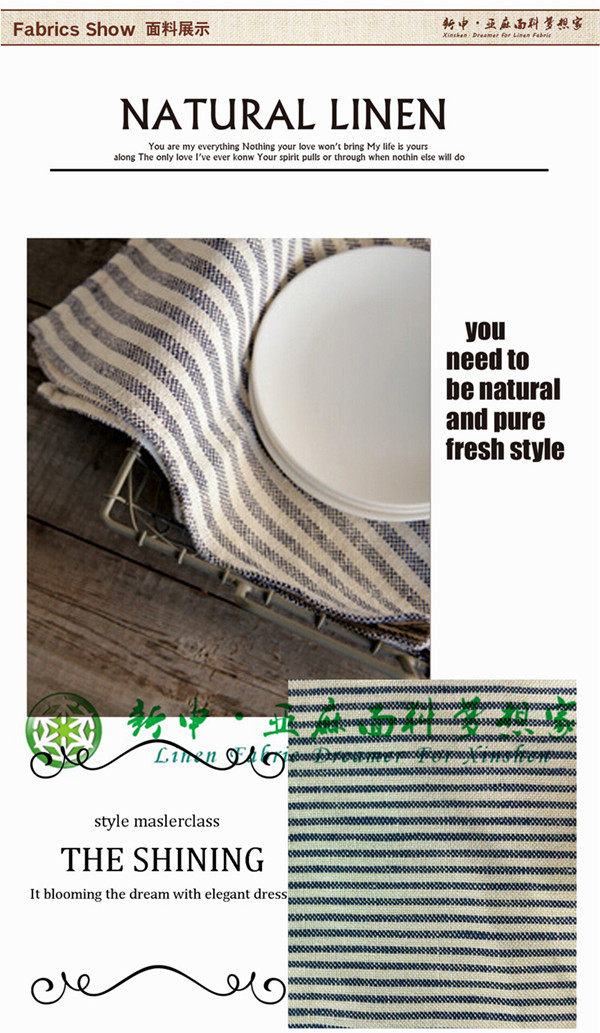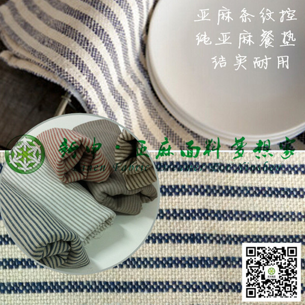純亞麻餐墊餐巾餐布 時(shí)尚藍(lán)白條紋亞麻面料