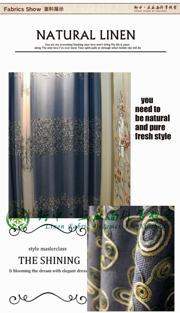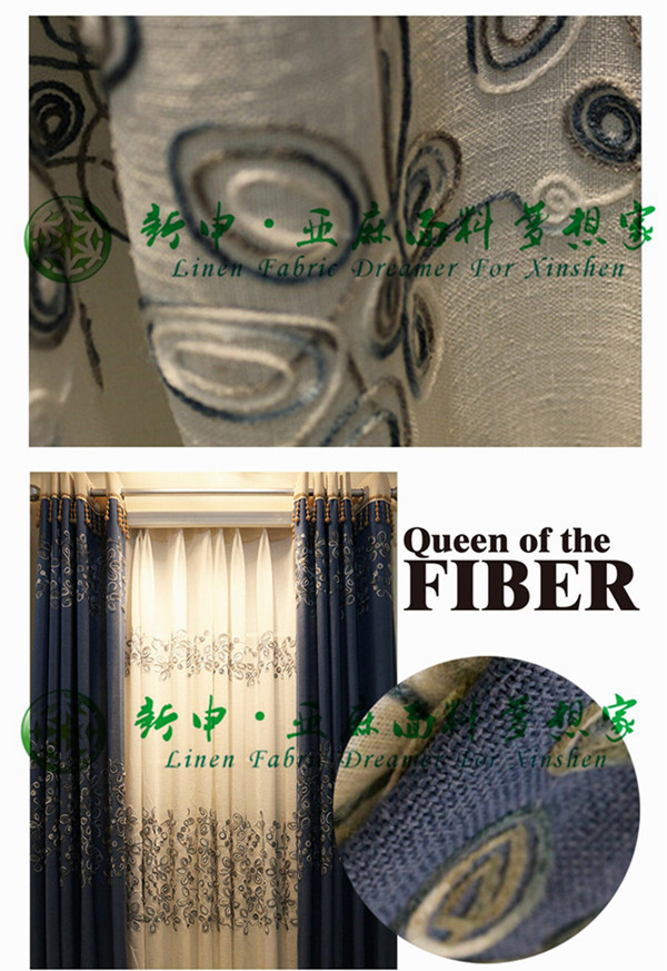 現(xiàn)代簡約布藝窗簾盤繡亞麻面料 遮光時(shí)尚