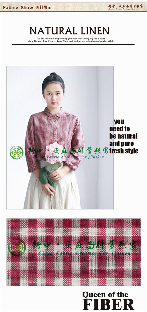 亞麻細格紋款式女式休閑襯衫布藝面料