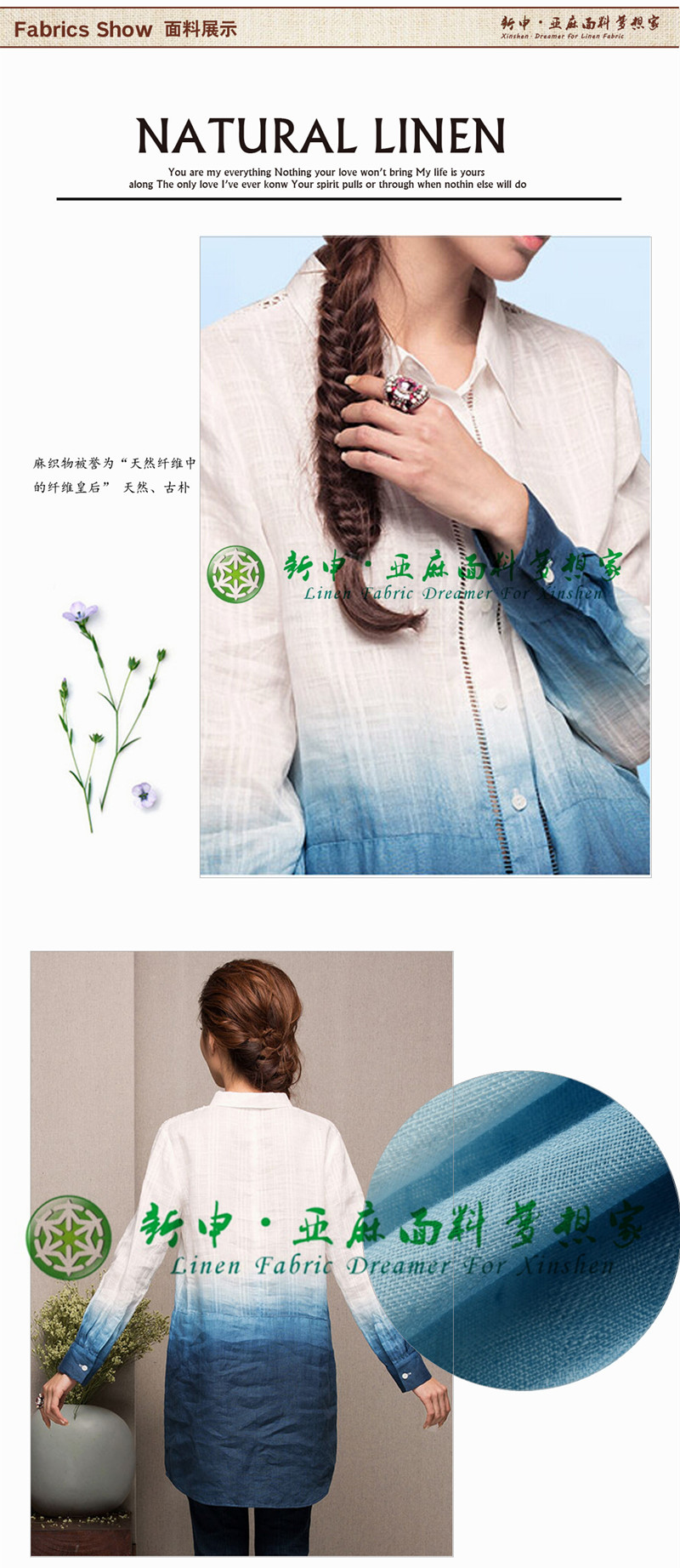 優(yōu)質(zhì)舒適純亞麻翻領(lǐng)漸變色女式襯衫面料