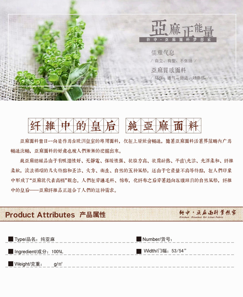 關(guān)鍵字:亞麻面料,優(yōu)質(zhì)舒適,自然親膚,簡約時(shí)尚,氣質(zhì)大方
