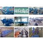 {原料(帶鋼卷)}→→雙頭開卷機→→拆卷機→→矯平機→→{鋼帶首尾剪切機+對焊機(客戶自備)}→→儲料倉(立式龍門或臥式活套)→→成型機組(無動力矯正+主傳動+成型+導(dǎo)縫+高頻感應(yīng)焊接+擠壓+去毛刺)→→冷卻槽→→定徑機組(定徑+矯直)→→電腦飛鋸→→下料架.