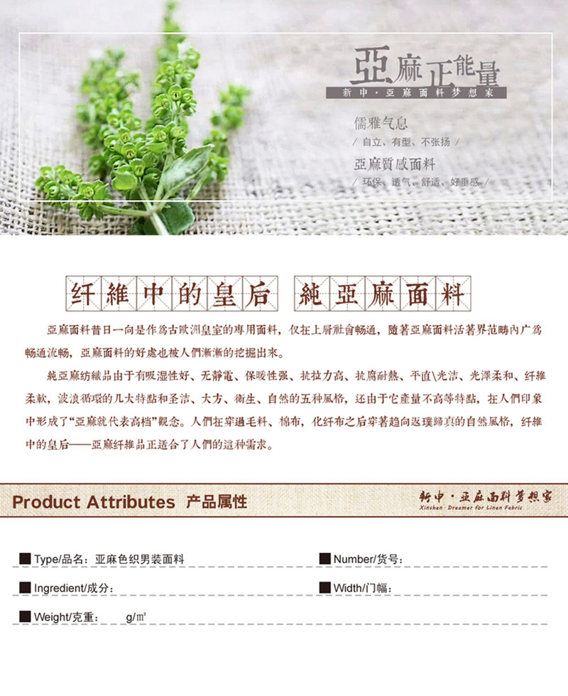 所屬分類 面料,麻面料