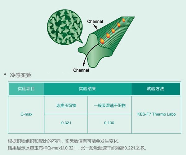 1、Icejade纖維內(nèi)部本身是十字截面結構,能迅速吸濕排汗,保持肌膚干爽透氣。