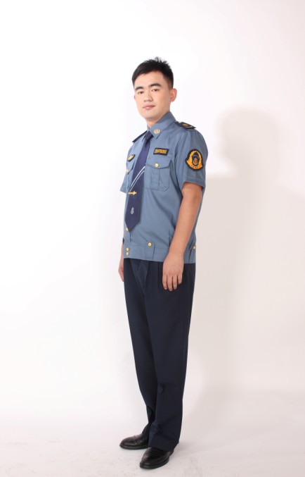 2、夏季套裝。分為長袖和短袖兩款(見服裝式樣圖)。配帶標(biāo)識紅色領(lǐng)帶。
