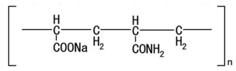 舒熱絲TM纖維是一種經(jīng)特殊工藝制成的一種丙烯酸纖維,是由丙烯酸、丙烯酸鈉和丙烯酰胺等基團(tuán)所組成的功能性纖維。纖維大分子中擁有很多能抓住水分子的親水基團(tuán)。其分子結(jié)構(gòu)如下: