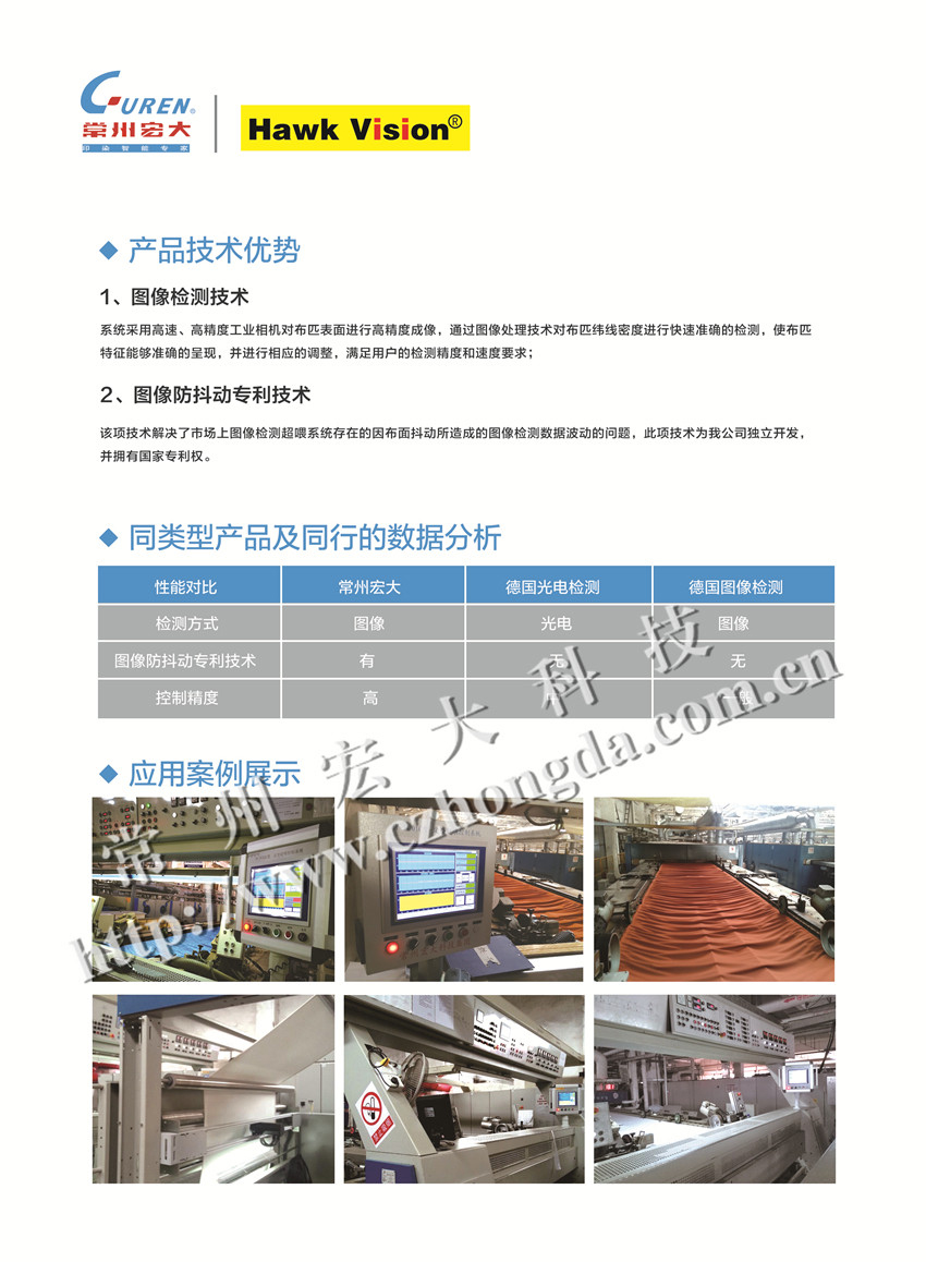 1、系統(tǒng)采用進(jìn)布和出布兩套緯密在線檢測傳感器,構(gòu)成閉環(huán)檢測控制系統(tǒng)