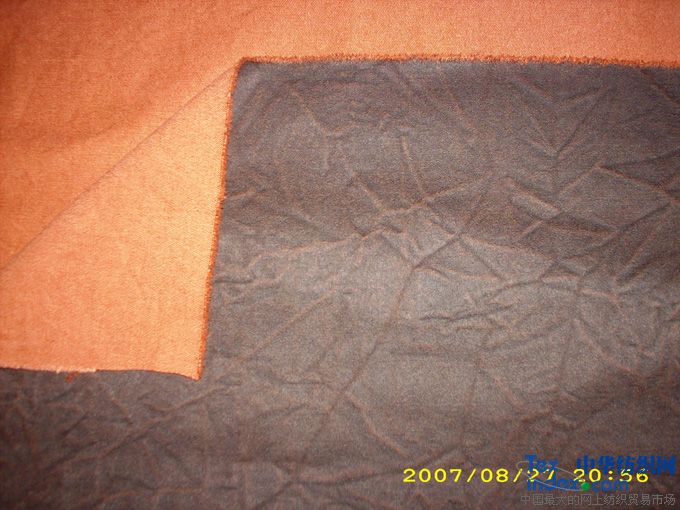 我廠配有軋光、涂層機(jī),并有專業(yè)水洗配套,做多種風(fēng)格的麂皮絨刮色涂層,歡迎打樣、加工合作!此圖為起皺刮色麂皮絨水洗后的樣。