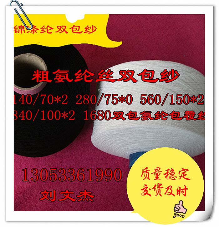 1、氨綸機械包覆紗:氨綸絲/錦綸(DTY、FDY)、氨綸絲/滌綸、氨綸絲/粘膠長絲、氨綸絲/金銀絲、氨綸絲/棉、氨綸絲/各種紗。
