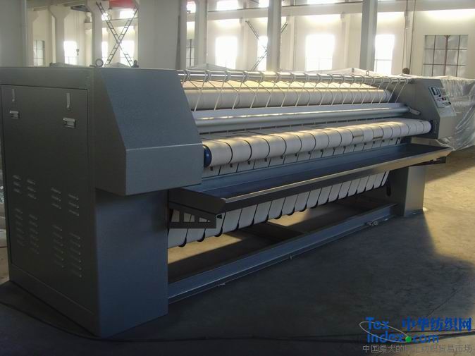 熨平機 結(jié)構(gòu): 該機由不銹鋼滾筒、底架、支架、調(diào)速變頻電機、輸送帶、輸送滾筒、傳動部件、電器部件等組成。