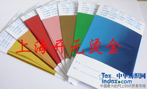 燙金紙用于面料,織物上的燙金,具有高檔的金屬光澤,使您的產(chǎn)品充分展現(xiàn)高貴、大方、時(shí)尚的潮流。同時(shí)性價(jià)比在同行業(yè)中名列前茅,大大提高終端客戶的接單競(jìng)爭(zhēng)力,真正使雙方達(dá)到長(zhǎng)期共贏的合作!本公司產(chǎn)品顏色達(dá)數(shù)百種,庫(kù)存充足,歡迎隨時(shí)聯(lián)系!