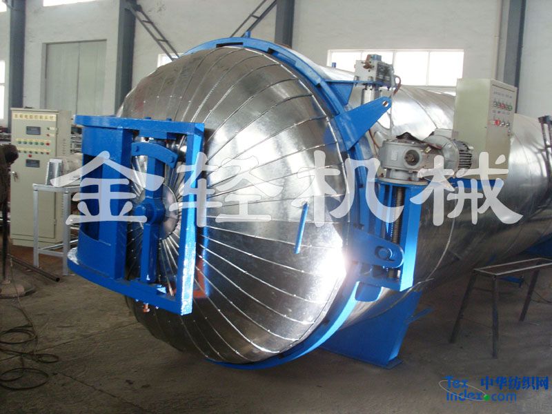 我公司生產(chǎn)的多種纖維真空定形快速蒸箱(以下簡稱“蒸箱”)適用于以天然纖維、化學(xué)纖維為原料的紡織行業(yè)和單位,其主要用途是將具備織造條件的連續(xù)的絲線在合并、加捻后進行定型,即用于化纖、真絲、羊絨、紗線、窗簾、起皺布、印花布等的定型。即在一定壓力溫度下穩(wěn)定捻度,獲得均衡的不扭縮絲線,便于后道工序的加工和提高產(chǎn)品質(zhì)量。對于強捻度的紗線,采用“蒸箱”定型顯得更為重要。 該“蒸箱”的使用特點是:適用范圍廣泛,既能濕熱定型(將飽和蒸汽直接通入筒體內(nèi)),又能干熱定型(將飽和蒸汽通入夾套內(nèi),由筒體內(nèi)壁散熱)。大門開關(guān)輕便,物體裝卸迅速,密封性能好,熱定型效率高,使用安全可靠。定型后的產(chǎn)品諸如強力伸長度等物理機械性能不受影響,保證了產(chǎn)品的質(zhì)量。