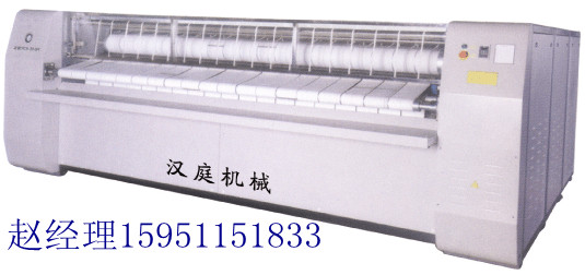 熨燙機(jī)是洗滌機(jī)械的一種,屬于洗衣房熨整設(shè)備。其主要部件一般是單個、兩個輥(現(xiàn)代的熨燙機(jī)可能含有三個輥),輥通過手搖或通過電力使之轉(zhuǎn)動。輥筒由蒸汽或者電加熱,達(dá)到一定溫度后,當(dāng)潮濕的衣物經(jīng)過兩個輥之間被軋過之后,可以除去大量的水分,且達(dá)到燙平的效果,用于床單、桌布、布料等等的軋平過程。