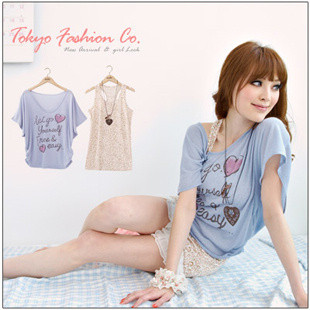 東京著衣 附項(xiàng)鏈愛心字母T兩件式