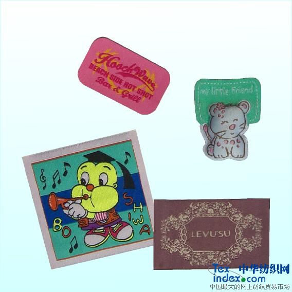 我公司專業(yè)生產(chǎn)服裝、鞋帽、箱包、床上用品等所需商標(biāo):織嘜、印標(biāo)、織帶、吊牌、吊粒、皮牌、拉頭、魔術(shù)貼搭扣、羽絨充氣標(biāo)及特種工藝商標(biāo)等。