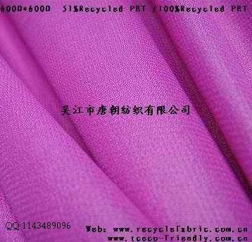(1)再生PET面料,是一種新型的環(huán)保再生面料 ,其紗線是從廢棄的礦泉水瓶子和可樂瓶中提取制成的,又俗稱為可樂瓶環(huán)保布(RPET fabric)。此產(chǎn)品因其是廢物再利用,所以在國外尤其是歐美發(fā)達(dá)國家很受青睞,廣泛用在登山包、挎包、箱包里料、書包、襪子,時尚包,吊帶衫,抗菌孕婦裝、T恤、童裝、男女休閑裝、風(fēng)衣、羽絨(防寒)服、工作制服、抗菌貼身嬰兒服裝,手套、圍巾、毛巾、浴巾、儲物箱里料,沙灘褲,泳衣,睡衣、運動服、束口袋、禮品袋,夾克、手提袋、購物袋、毯子、帽子、鞋材、包、雨傘、窗簾等等。