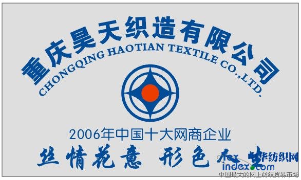重慶昊天織造有限公司是2007中小企業(yè)電子商務(wù)應(yīng)用百強(qiáng),總經(jīng)理劉文華先生是2006年中國十大網(wǎng)商,重慶市網(wǎng)商協(xié)會副會長。公司成立于2003年,其前身為1998年創(chuàng)辦的重慶廣渝織布廠,坐落在人杰地靈,物華天寶,風(fēng)景秀麗,交通便捷的重慶市沙坪壩區(qū)回龍壩鎮(zhèn)青龍廟村西溪河畔,團(tuán)歇公路旁。