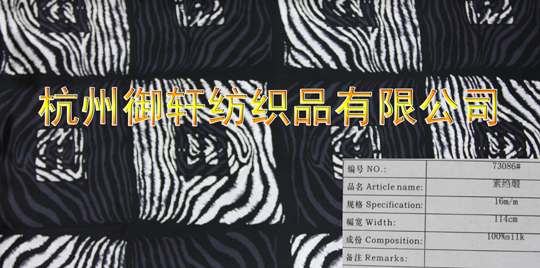 杭州御軒紡織品有限公司位于美麗的杭州,毗鄰西子湖畔,是一家集生產(chǎn)、印染、設(shè)計(jì)、銷售于一體的絲綢產(chǎn)品企業(yè)。公司擁有先進(jìn)的生產(chǎn)設(shè)備,雄厚的技術(shù)力量。我們以科學(xué)的管理、高質(zhì)的產(chǎn)品,在市場(chǎng)上具有一定的競(jìng)爭(zhēng)力。公司生產(chǎn)印染各種紡織面料,其中以真絲面料為主要產(chǎn)品,包括絲麻、爛花綃、喬其、素縐緞、雙宮綢、雪紡、絲棉紡、雙縐、真絲綃、桑波緞和絹類等面料。產(chǎn)品種類繁多,有染色、印花、面料繡花和各式各樣的圍巾。產(chǎn)品不僅暢銷國(guó)內(nèi)市場(chǎng),而且遠(yuǎn)銷到意大利、美國(guó)、韓國(guó)、新加坡、馬來(lái)西亞、印尼、印度等國(guó)家。