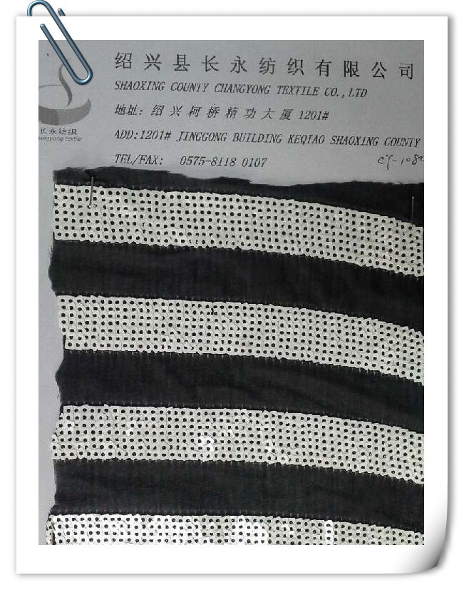 紹興縣長永紡織有限公司是一家集加工貿(mào)易為一體的紡織企業(yè),主要生產(chǎn)和經(jīng)營各種中高檔繡花面料以及其他各類輔料花邊(棉布花邊、水溶花邊、網(wǎng)布花邊),主要有棉布、網(wǎng)布、薄紗等進行各種面料的繡花加工,產(chǎn)品的風(fēng)格獨特,一流的品質(zhì),深受國內(nèi)外客商的青睞。我們一貫注重新產(chǎn)品的開發(fā)和設(shè)計,推出一系列新產(chǎn)品緊跟國際潮流,深受海內(nèi)外客商的好評。公司在生產(chǎn)經(jīng)營過程中嚴格控制產(chǎn)品質(zhì)量,追求品質(zhì)完美。已獲得國內(nèi)外很多服裝業(yè)、紡織貿(mào)易商的認可和信賴,同時與他們建立良好的合作關(guān)系。