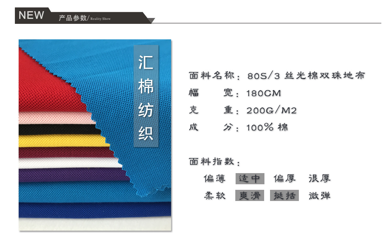 產(chǎn)品關(guān)鍵字:絲光棉布,絲光棉面料,絲光棉雙珠地布,絲光棉雙面網(wǎng)眼布,珠地布