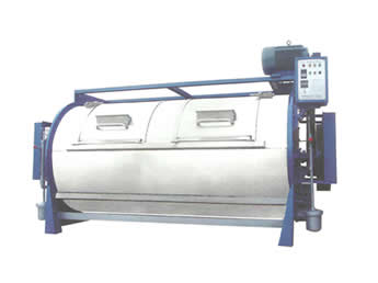 水洗機:按容量大小分為:10kg、20kg、50kg、70kg、100kg、150kg、200kg、300kg、400kg等系列。該設備是滾筒型,內(nèi)、外殼采用優(yōu)質(zhì)不銹鋼制作而成,平整光滑、耐腐蝕、不損傷織物。該機由內(nèi)筒、外筒、電機、支撐總成、傳動總成、電器總成組成,結構合理、安裝使用方便。 水洗機工作原理:由頂置電機、三角膠帶、帶動傳動總成,使內(nèi)筒作正反轉運轉, 通過織物與織物、織物與內(nèi)筒壁的相互摩擦,達到洗滌效果。機器內(nèi)置過熱、過載裝置、定時裝置、正反轉控制裝置。外筒門設有安全裝置,若運行中門被打開,機器立即停止運轉,確保機器、操作人員的安全。