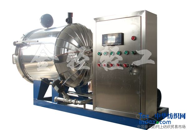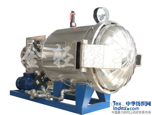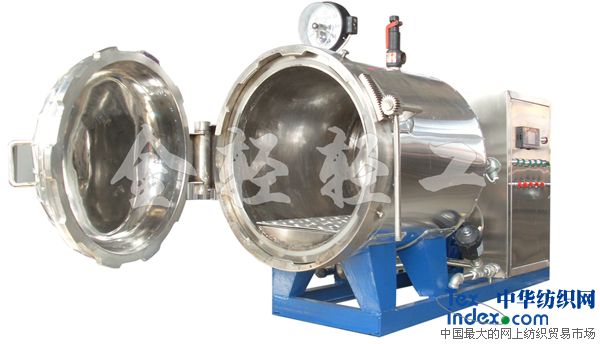 金輕牌蒸紗機(鍋)廣泛適用于縫紉線、真絲、長絲、棉紗、羊絨、商標絲、腈綸絲束、印花毛條等多種纖維的調濕、定形及起皺布定型,雨傘布著色,印花布著色,花邊、窗簾、毛巾印花定型、起絨,羊絨繡花定型等。