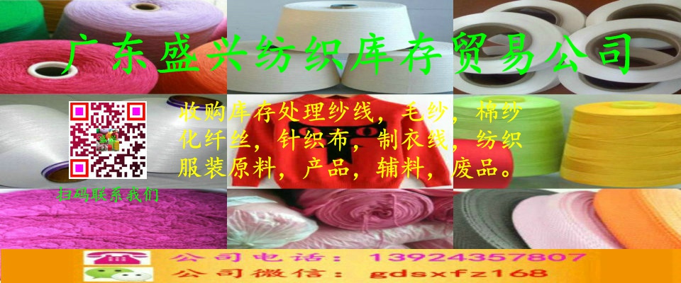 本公司長期高價(jià)收購庫存處理各種羊絨紗,羊毛紗,兔毛紗,羊仔毛紗,馬海毛紗,三七毛紗,人造毛紗,腈綸紗,仿羊絨紗,棉紗,腈棉紗,人造棉紗,麻棉紗,絲光棉,粘膠紗,曲珠紗,錦綸高彈絲,氨綸包覆紗,金銀線,毛衣,制衣線,刺繡線,針織布,布頭,布尾,布碎及各種棉紗廢紗,化纖廢絲,毛織衫片,毛織廢片,廢紗等各種紡織,毛織廢品,廢料。