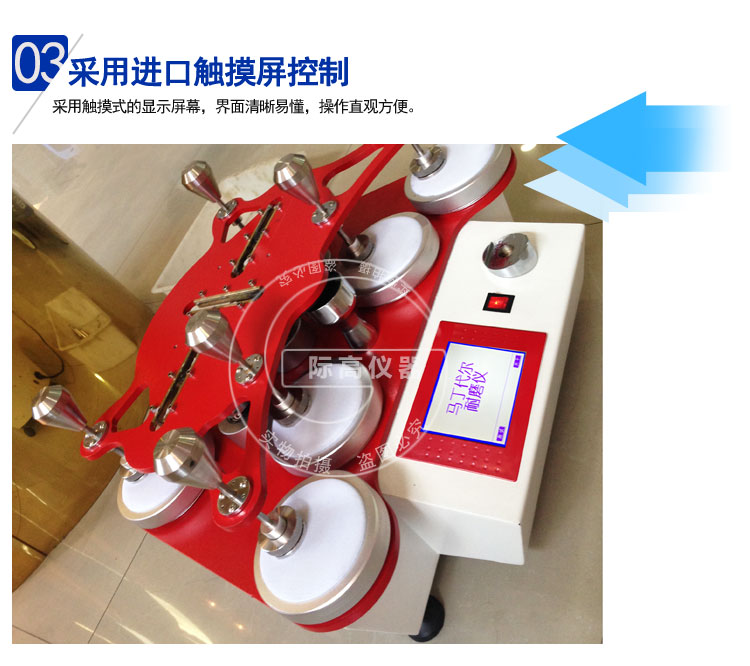 馬丁代爾耐磨儀是吸取國(guó)內(nèi)、外同類儀器優(yōu)點(diǎn)設(shè)計(jì)而成,其外形美觀大方、采用觸摸式的顯示屏幕,界面易懂,操作簡(jiǎn)便,微機(jī)系統(tǒng)采用兩種計(jì)數(shù)方式,直觀大方,設(shè)定方便,九個(gè)工位同時(shí)試驗(yàn),提高試驗(yàn)效率。儀器還設(shè)有二種李沙茹(Lissajous)24mm×24mm、60.5mm×60.5mm運(yùn)動(dòng)軌跡和多種配套附件,能適應(yīng)多種試驗(yàn)方法標(biāo)準(zhǔn)。